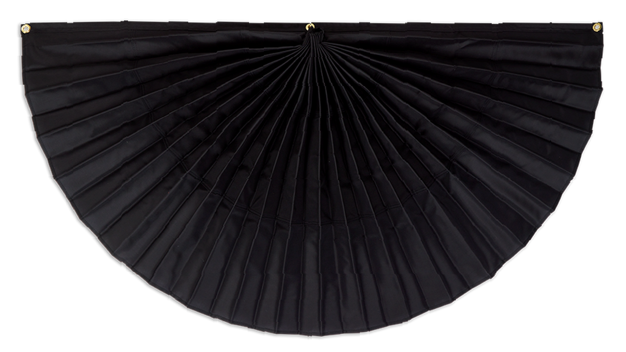 3' x 6' Mourning Fan. Made of 200 denier nylon. Ideal for outdoor (or indoor) use. These can be used over a doorway or the front of a vehicle. The band across the top has grommets for easy mounting.